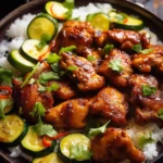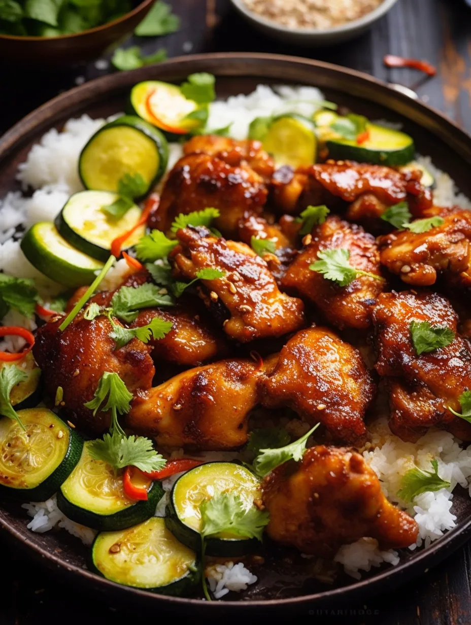 Imagine the aroma of garlic, honey, and spicy chili wafting through your kitchen as this dish bakes to perfection. The vibrant colors of the zucchini and perfectly roasted chicken thighs make for a visually delightful meal. It’s not just a dinner; it’s an experience that brings warmth and joy to your dining table.